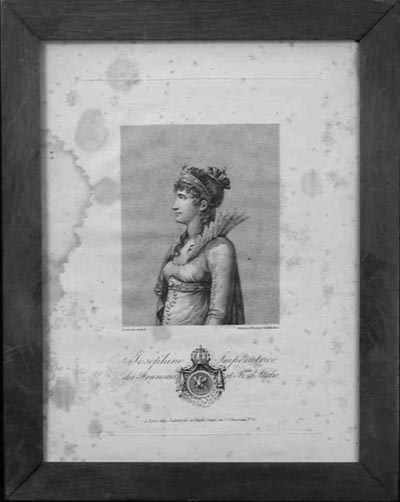 This frame was made from a shelf taken from the library of Josephine, in the Palace of Malmaison, near Paris, France, by W. C. Crane, on May 24th, 1892.
