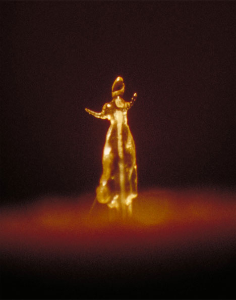 The figure of a woman sculpted on a strand of the artist's white hair.